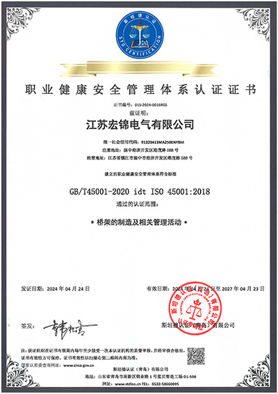 职业健康安全管理体系认证证书